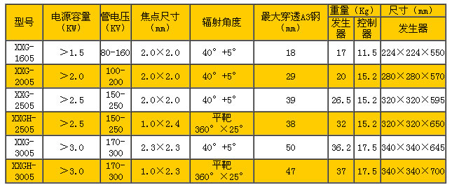 XXG—1605型、XXG—2005型、XXG—2505型、XXG—3005型探傷機(jī)均為波紋陶瓷管定向輻射探傷機(jī)XXGH—2505型、XXGH—3005型為波紋陶瓷管周向輻射探傷機(jī),其最大的特點(diǎn)是X射線管采用電壓高、體積小、性能穩(wěn)定、壽命長的波紋陶瓷管,從而使X射線發(fā)生器的體積更小,重量更輕,在使用壽命和抗震方面優(yōu)于其它種類的X射線探傷機(jī)。